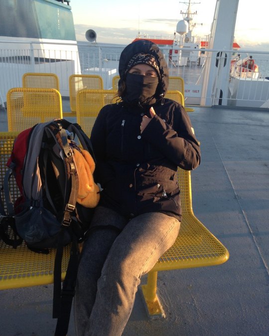 Arrivé·es en Écosse, le paysage se fait plus rude : moins d’arbres, plus de reliefs et plus de bruyères. On s’arrête à Aberdeen pour prendre notre deuxième bateau, où les annonces du chef de bord se font autant en anglais qu’en gaélique. Le dépaysement est total. On s’endort dans notre cabine bercé·es par la houle. Au petit matin, nous y sommes : ensuqué·es de sommeil, nous sortons sur le pont pour admirer le lever de soleil sur l’archipel des Shetlands.
