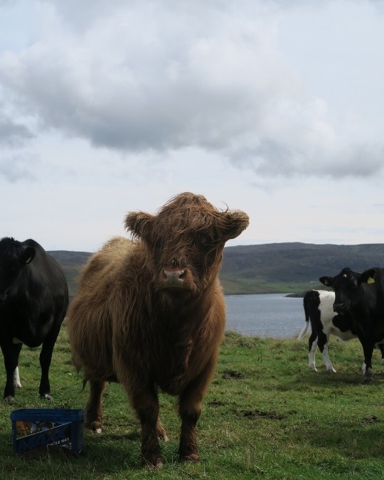 Pendant plus d’une semaine, nous sillonnons l’archipel, guettant les loutres dans les cours d’eau, les biches et les cerfs dans les prairies, nous garant prudemment sur les bas côtés des routes étroites pour laissez passer les autres conducteur·ices qui nous saluent amicalement. Puis vient l’heure d’une nouvelle traversée vers une des îles les plus célèbres du pays : l’île de Skye.
